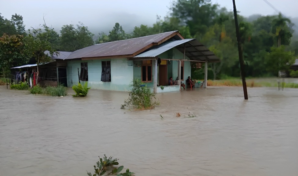 Banjir yang merendam pemukiman warga di Kabupaten Tapanuli Utara, Sumatra Utara, Selasa (25/11). (Foto: BPBD Kabupaten Tapanuli Utara)