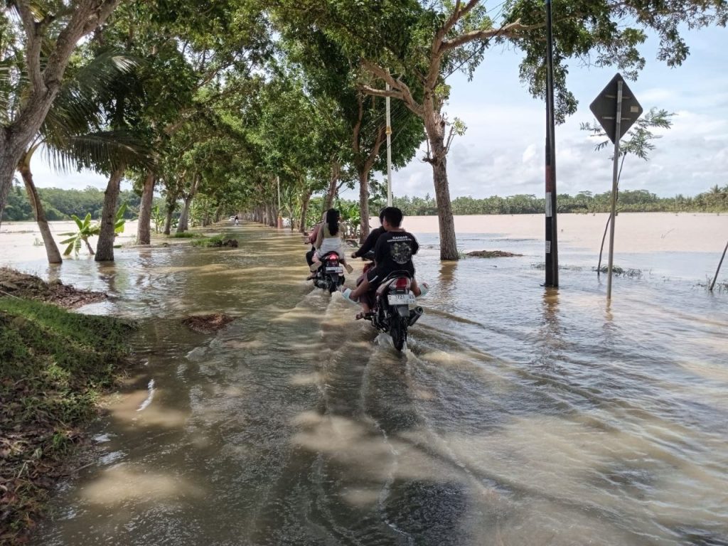 Sampai Minggu pagi, air memang mulai surut, tetapi sisa lumpur dan sampah menutupi badan jalan menuju pelabuhan. Pengendara roda dua harus ekstra hati-hati karena jalan licin, sementara warga menilai kerusakan akses transportasi semakin sering terjadi.